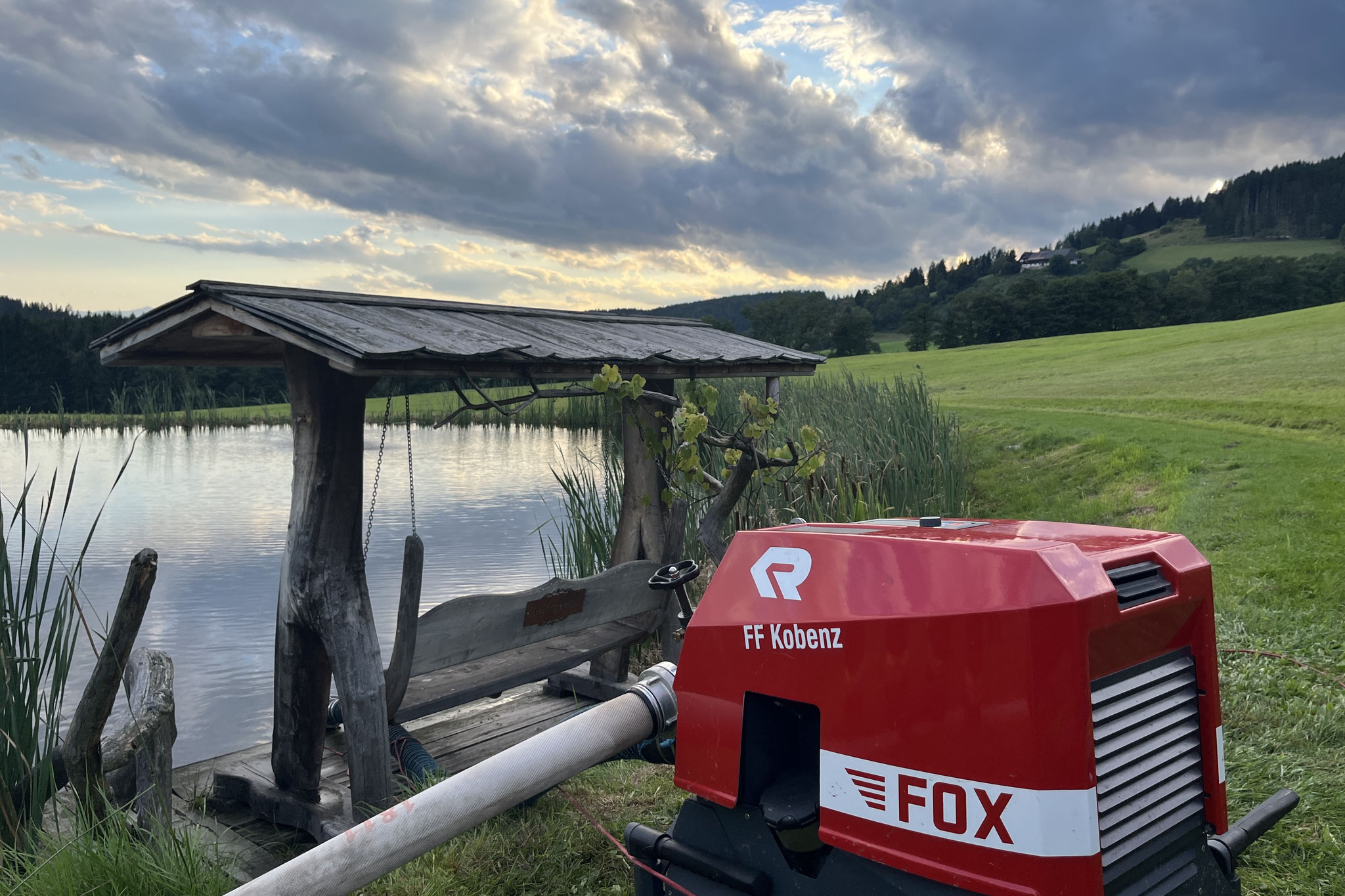Die Mannschaft des KLF-A musste aufgrund eines Defekts der Tragkraftspritze bei der Ansaugstelle ihren Standort verlassen und die Löschwasserversorgung ehestmöglich durch eine Ersatzpumpe wiederherstellen.