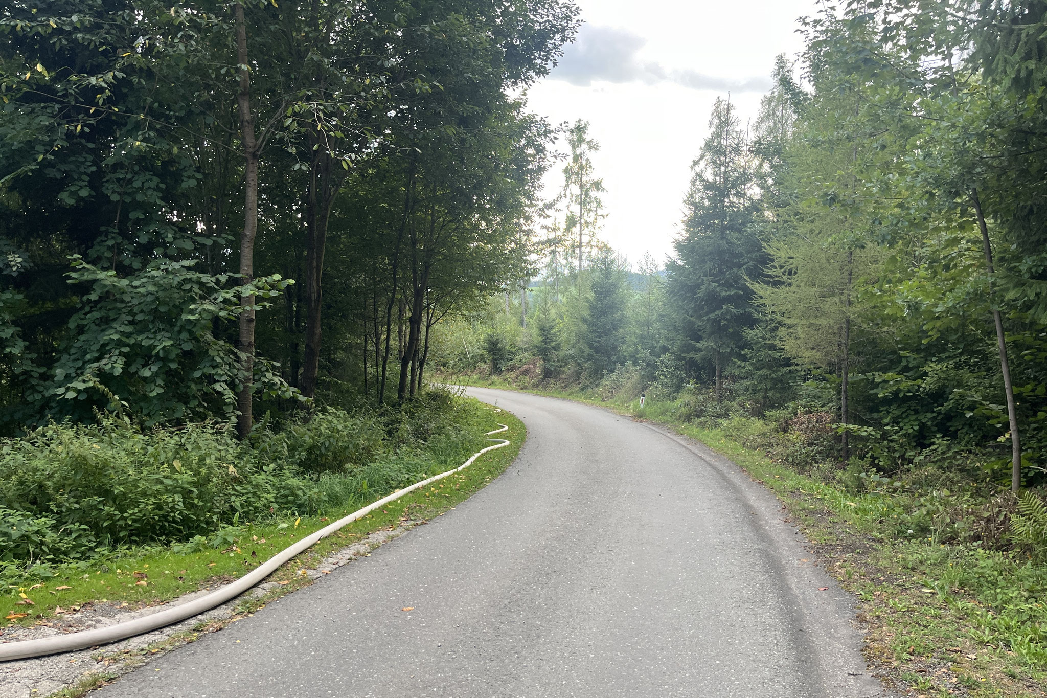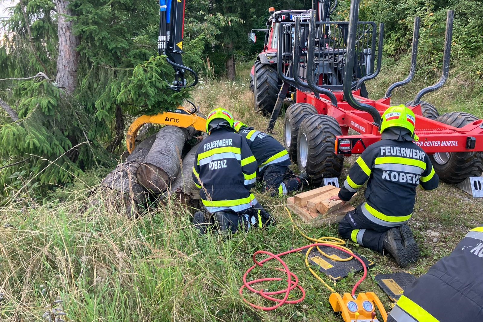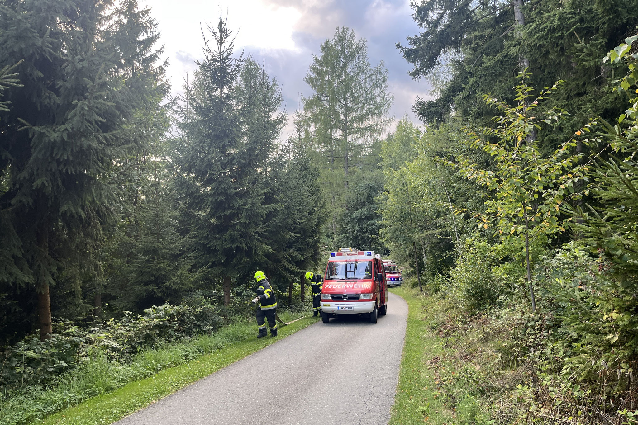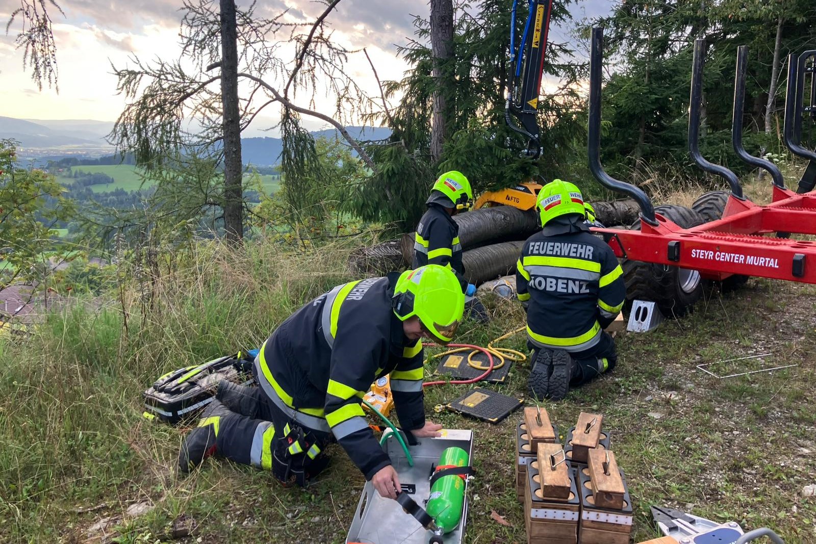 Das HLF-1 bekam bereits kurz nach dem Eintreffen den Einsatzbefehl für eine Menschenrettung bei einem abgelegenen Forstunfall.
