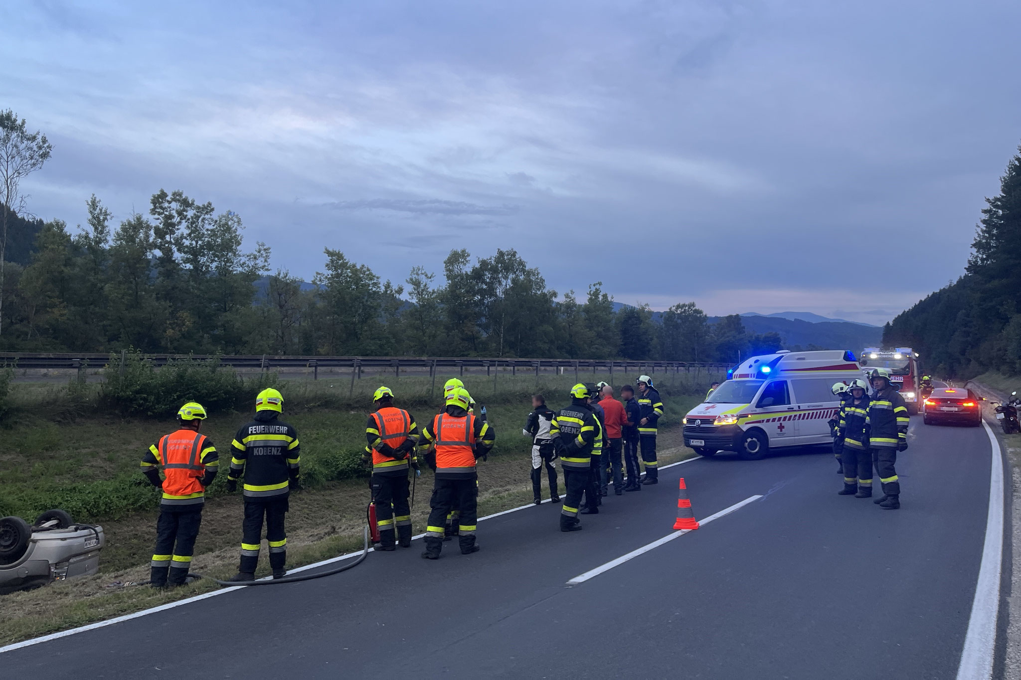 Bereits kurz nach dem Eintreffen konnte jedoch rasch Entwarnung gegeben werden: Der Lenker hatte das auf dem Dach liegende Fahrzeug selbstständig verlassen und wurde bereits vom Rettungsdienst betreut.